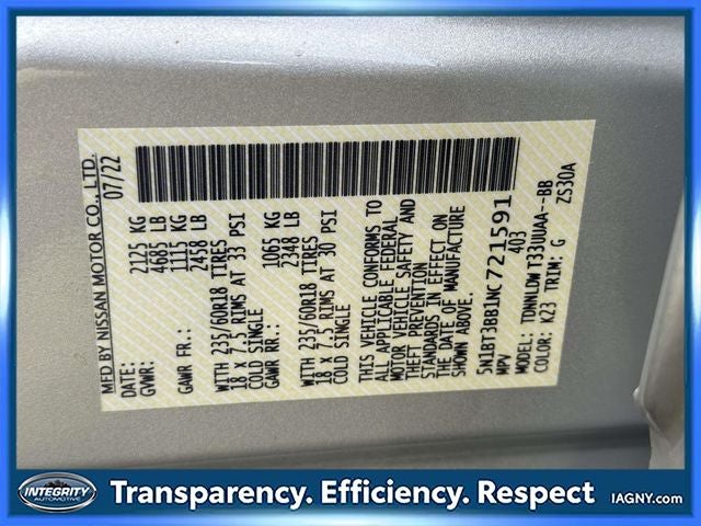 - Radio: AM/FM -inc: 6 speakers, NissanConnect featuring Apple CarPlay and Android Auto, 8" color display w/multi-touch control, SiriusXM satellite radio, 2 illuminated USB connection ports (1 type-A, 1 type-C), Bluetooth® hands-free phone system, streaming audio via Bluetooth® and hands-free text messaging assistant